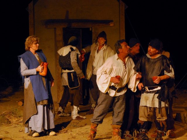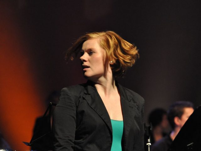 for 9 female voices, trumpet, trombone, violin, accordion, bass guitar & 16 percussionists